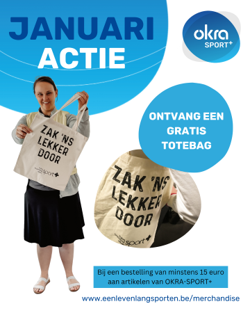 Bij een bestelling van minstens 15 euro aan artikelen van OKRA-SPORT+ (exclusief verzendkosten) ontvang je een gratis totebag van OKRA-SPORT+.