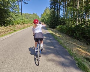 De route bleek een schot in de roos. Mooie vergezichten, rustige wegen, en een afwisselend parcours met klimmen en dalen. Volgens haar partner, die al meerdere routes reed, was dit de mooiste tot nu toe. Dat wil iets zeggen, want sommige wegen zijn eerder een lappendeken dan een fietspad. Maar hier was het genieten: van de natuur, van de inspanning, en van het samen onderweg zijn.