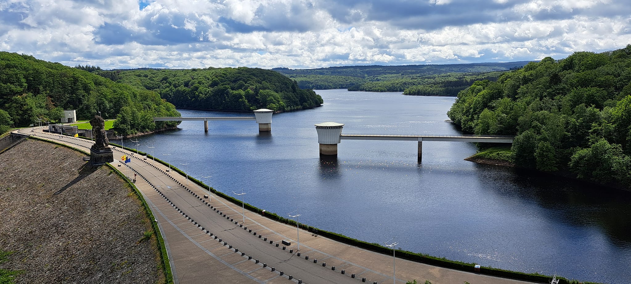 Het 1ste GR teken kom je al tegen als je uit de trein stapt. Na 1,75 km passeer je dan de jeugdherberg van Eupen en de splitsing van de vele GR routes die hier lopen. Enige oplettendheid is hier aangewezen. Gelukkig weet Komoot altijd de juiste weg of ik was vandaag in Monschau toegekomen in plaats van in Spa. Na de splitsing het bos in voor bijna de rest van de dag. Op km 10 passage langs Lac du Gileppe met zijn bekende leeuw. Indrukwekkend! Halfweg in het gezelschap van de caminoschelp en deze bleef de GR volgen tot op het einde.