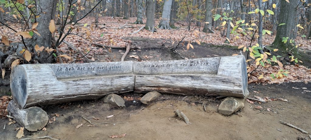 Op een zonnige herstdag in november trok Katleen samen met enkele vriendinnen op pad voor de “Speelbergwandeling” met een afstand van 12 km waarvan 9 km onverhard. Starten deden ze aan Sint-Kwintenkerk in Linden (Lubbeek) waar knoopput 5 hen meteen al het bos in leidde. Ze passeerden de bank van Pippi Langkous “Ik heb het nog nooit gedaan dus ik denk wel dat ik het kan” en werden betoverd door de mooie herfstkleuren in het bos, gevolgd door een 1ste pittige klim (en nadien volgend er nog een aantal van deze klimformaten). Zorg er dus voor dat je op voorhand je kuiten al hebt ingesmeerd :-).